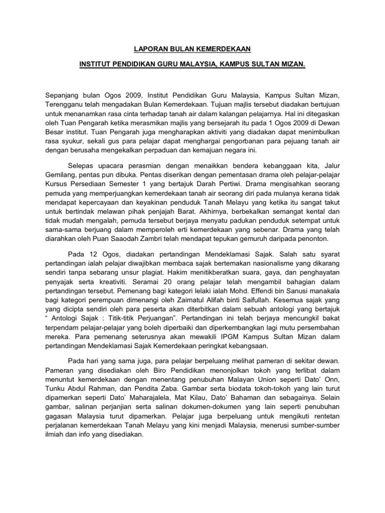 Contoh karangan laporan sambutan kemerdekaan peringkat sekolah blog ini baru dilancarkan dan masih dalam proses penambahbaikan. Hari kebangsaan disambut pada 31 ogos setiap tahun. Kami berharap agar blog ini nanti boleh menjadi .